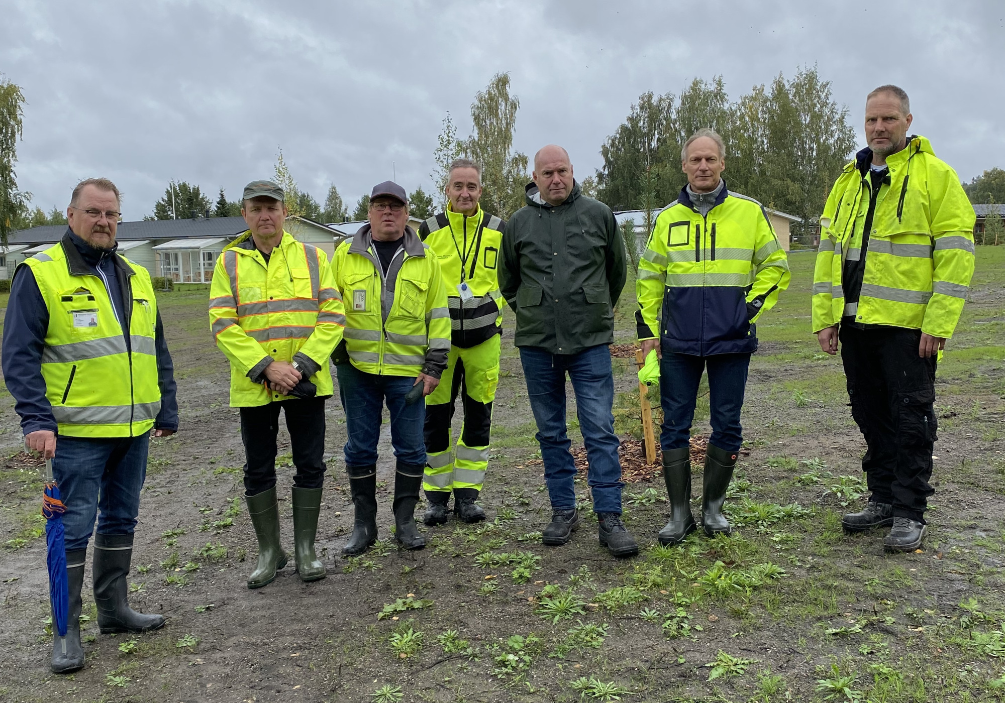 Loppukatselmuksessa olivat mukana Vesa Berg Parikkalan kaupungilta (vas.), Jari Tiainen Pirkanmaan ELY-keskuksesta, isännöitsijä Kari Nokelainen, Timo Laine Kaakkois-Suomen ELY-keskuksesta, isännöitsijä Jarmo Noponen, Arto Ahonen Imatran seudun ympäristötoimesta sekä Panu Mäkinen Veljekset Ovaska Oy:stä. Kuva: Olli Kolari/ Ramboll Oy